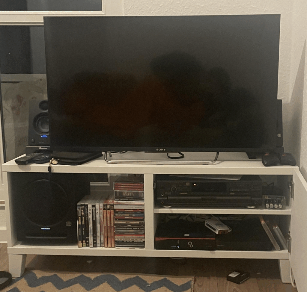 So the center of it is an old 1080p sony tv that i got for shipping costs. It is safe if the virus attacking it is from 2015, so it isn’t connected to the Internet. It’s also quite slow. like idk what hardware they built into it but i feel like a pi 3b is quicker. At least it starts directly to the last active output so i don’t have to interact with the smart TV side of this. When it comes to ports it offers two SCART ports (unused), some rca in, four hdmi and 3.5mm audio out.